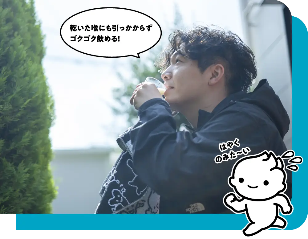 熱中症対策にはもちろん、サラリとした飲み心地で水分補給にも効果的。