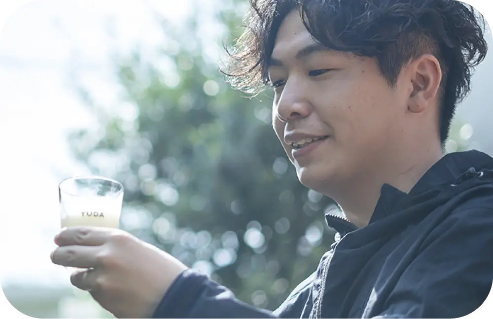 のむ湯田ヨーグルトの糖度は果物と同じくらい。飲んだ瞬間にしっかり甘さを感じますが、ヨーグルトの酸味が後味をすっきりリセット。だから飽きがこず、ゴクゴク飲めるのです。