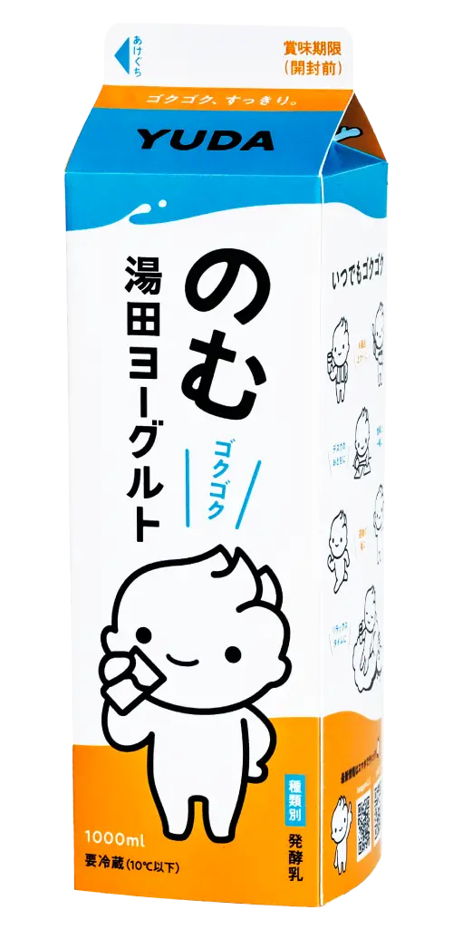のむ湯田ヨーグルトは、じっくり発酵を終えてから詰める「前発酵方式」。だから牛乳のようになめらかで、果汁のようにすっきり。優しい酸味と軽快な後味で、ついもう一口飲みたくなる味です。