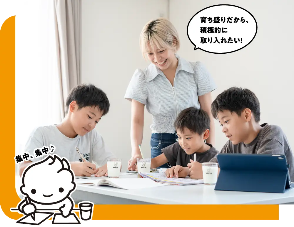 勉強の合間のひと休みにも、のむ湯田ヨーグルトが活躍。
